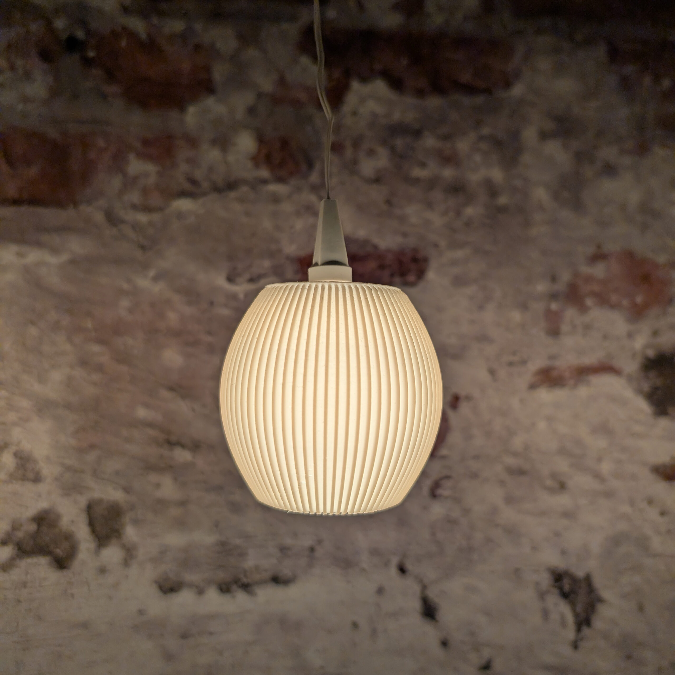 Die vertikalen zarten Streifen erzeugen ein spannendes Lichtspiel und bringen minimalistisches Design in dein Zuhause. Gefertigt wird der Schirm aus robustem ASA-Kunststoff, der langlebig, hitzebeständig und lichtdurchlässig ist.