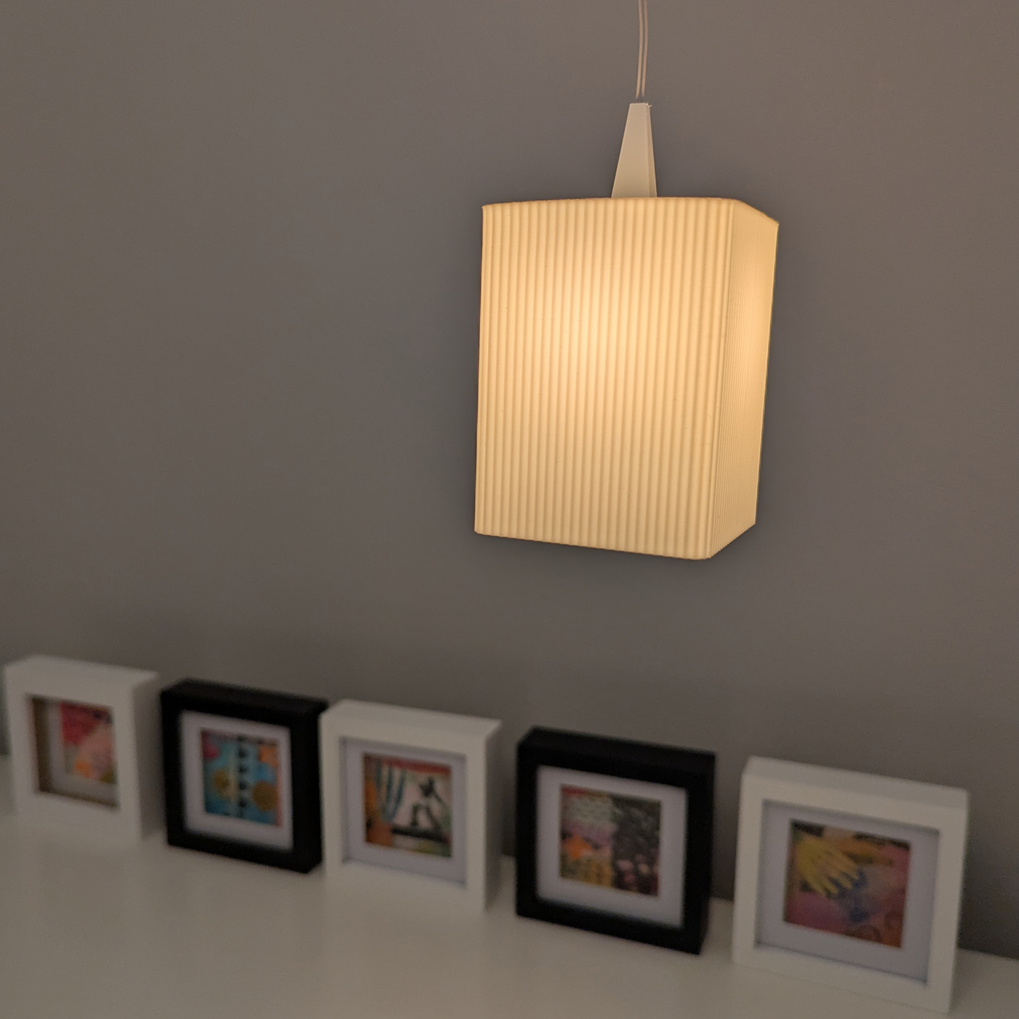 Die klare Geometrie bringt Ruhe und Struktur in den Raum – und hebt sich deutlich von klassischen Lampenschirmen ab.