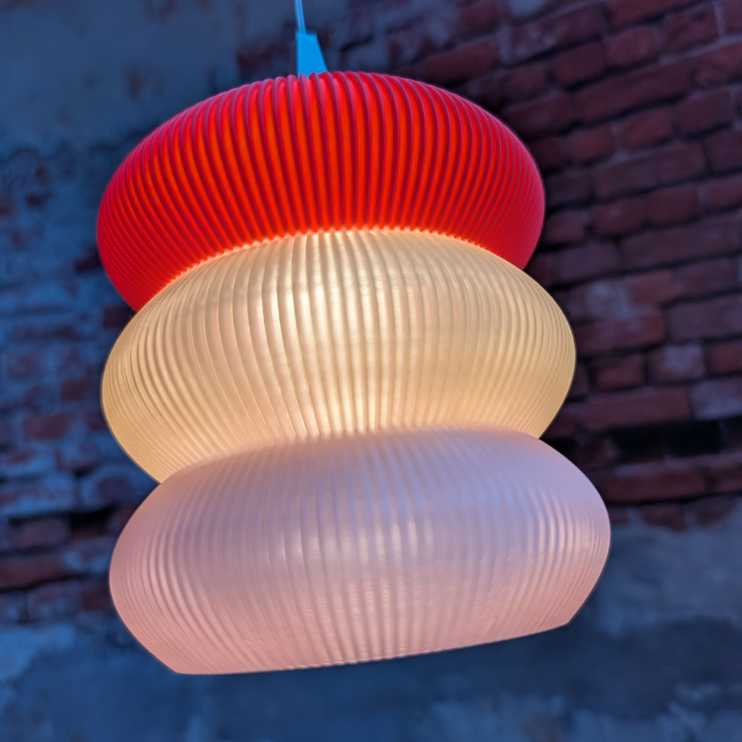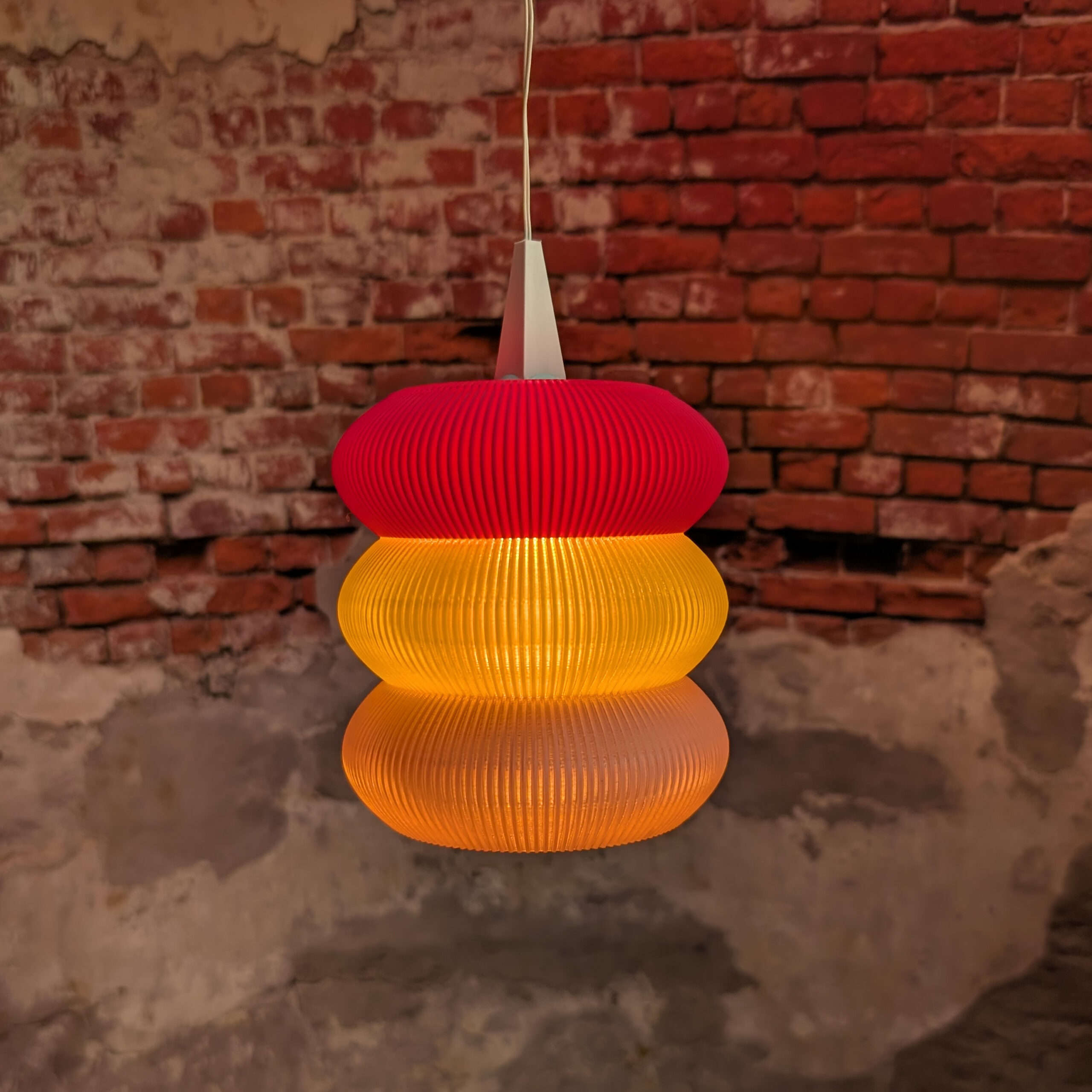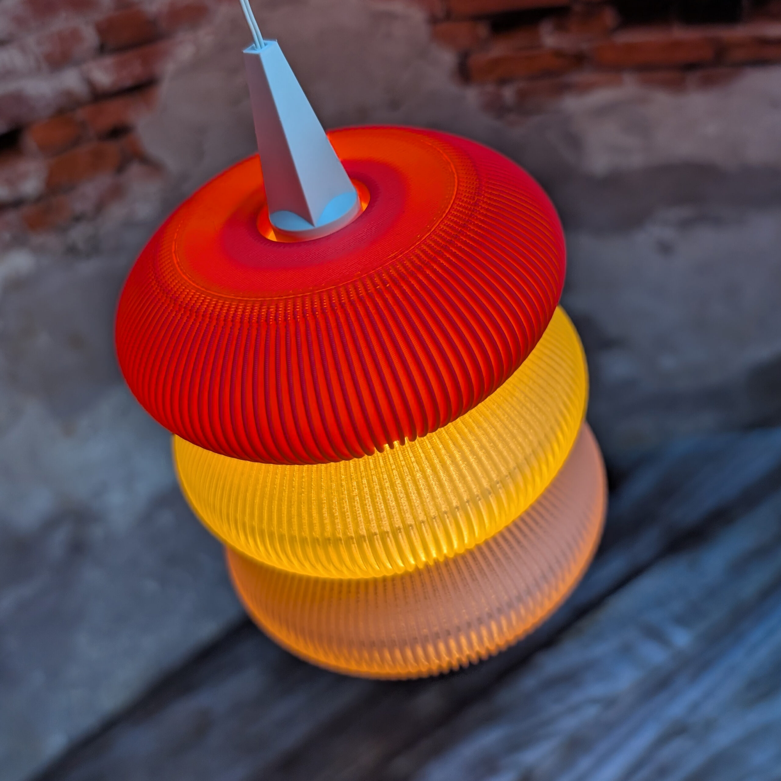 Die gestapelten Elemente verleihen dem Lampenschirm eine besondere Tiefe und machen ihn aus jedem Blickwinkel spannend.